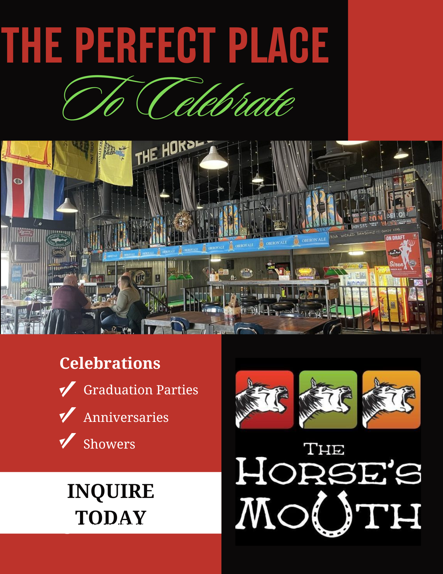 Got a birthday party, rehearsal dinner, corporate or other event coming up? We're a great option for your gathering! Inquire today and let us know how we can make your special occasion perfect!